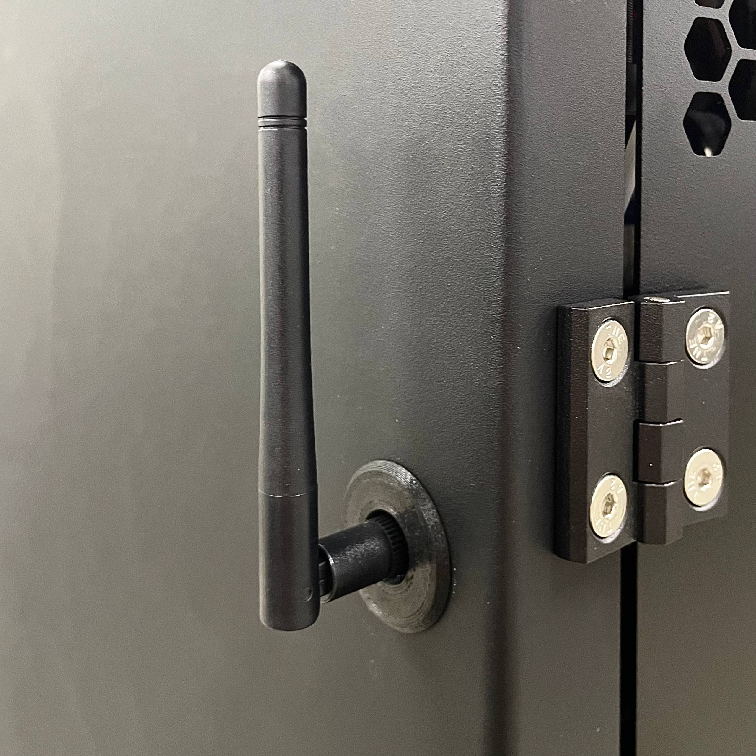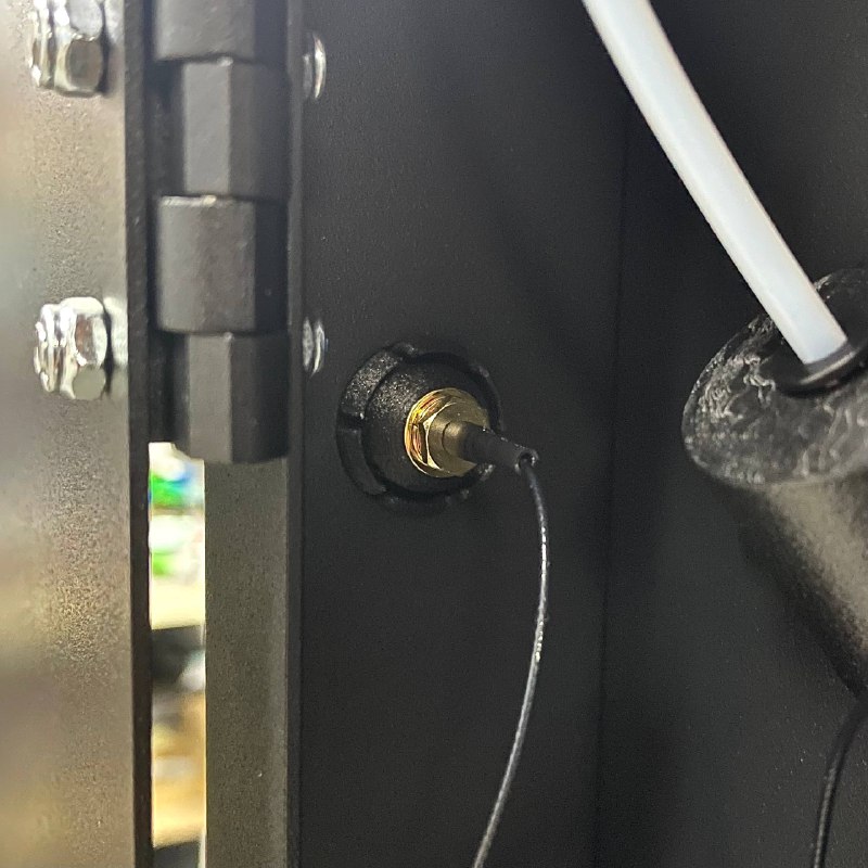 - Find the WiFi antenna in the accessory box and screw it on from the outside of the printer.