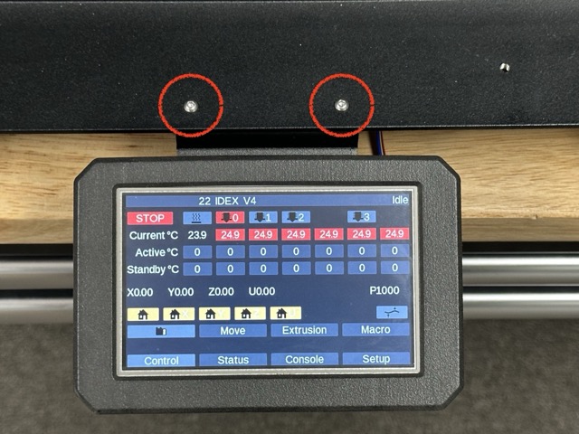 Secure the screen with two screws from the top using the supplied 2mm hex key.