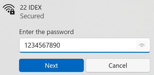 Connect to the 22 IDEX network (password: 1234567890) and navigate to http://192.168.0.1 in your browser.