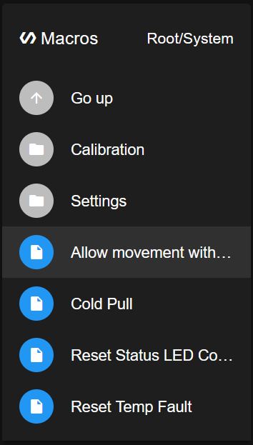 Macros section at the right side, choose the System folder and run the Allow Movement Without Homing macro.